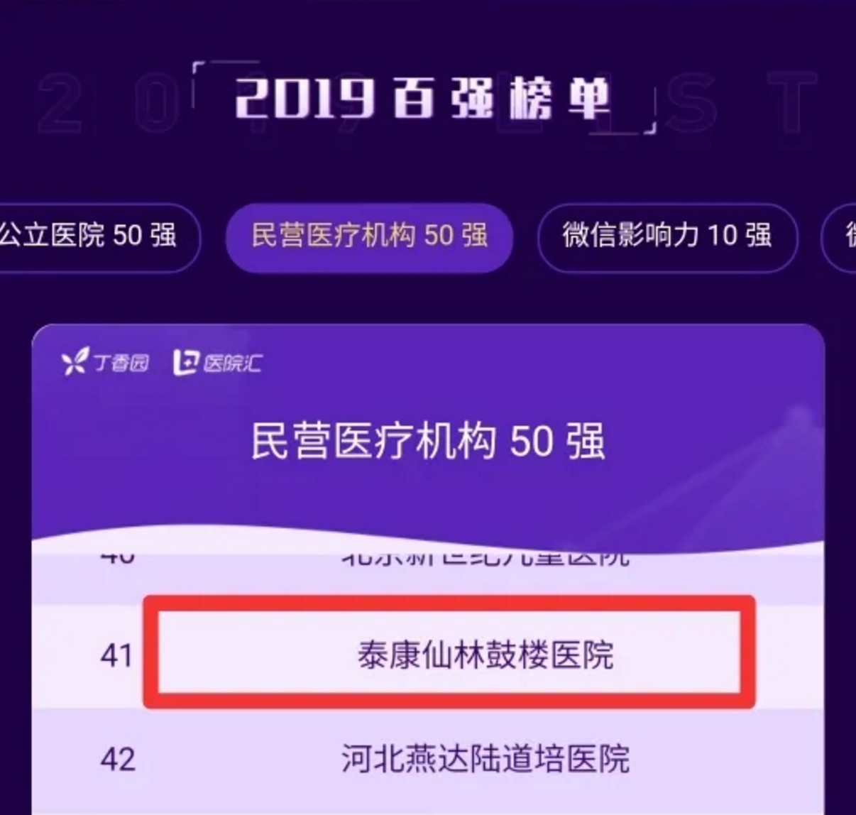 银河集团 银河仙林鼓楼医院连读第二年入围中国民营医疗组织50强。